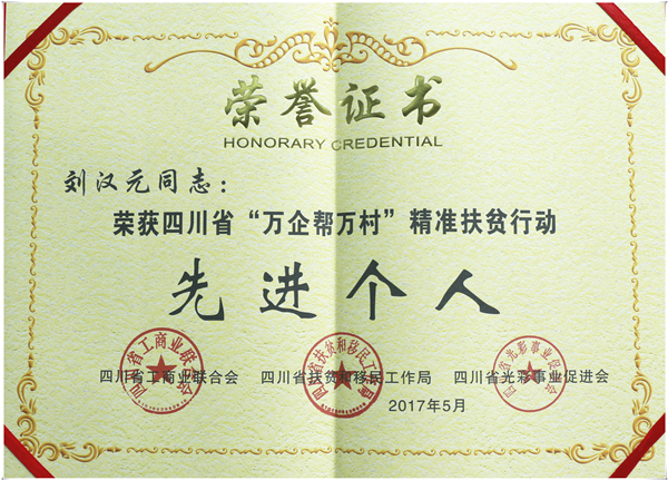 劉漢元主席榮獲“四川精準扶貧行動先進個人”榮譽稱號