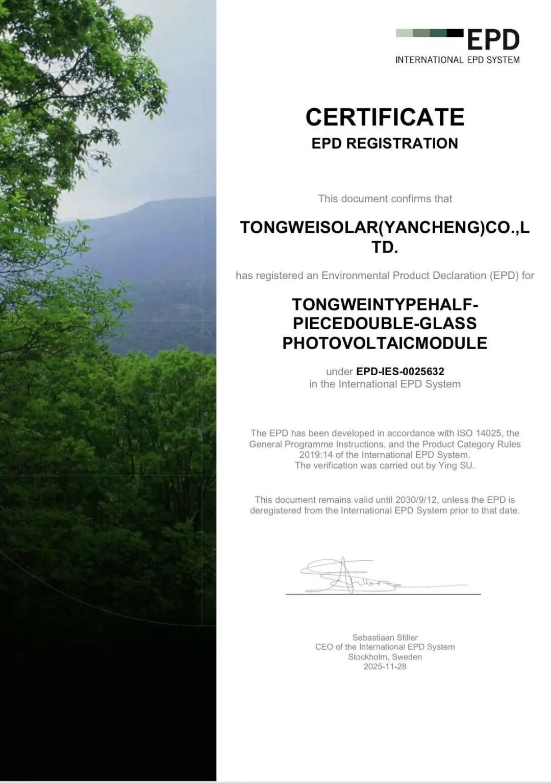 通威太陽能科技鹽城基地榮獲國際EPD認證證書