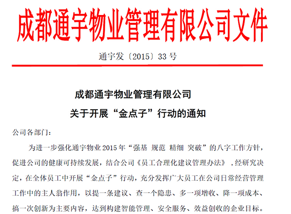 通宇物業啟動“金點子”合理化建議征集活動