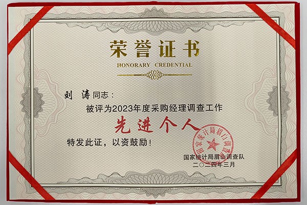 通威太陽能(眉山)有限公司員工榮獲“2023年度眉山市采購經理調查工作先進個人”表彰