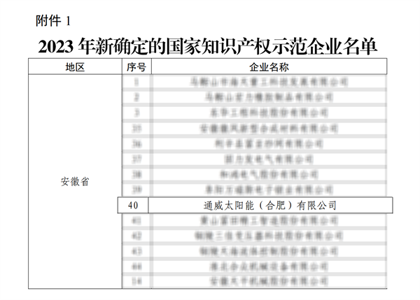 通威太陽能(合肥)有限公司獲評2023年國家知識產權示范企業