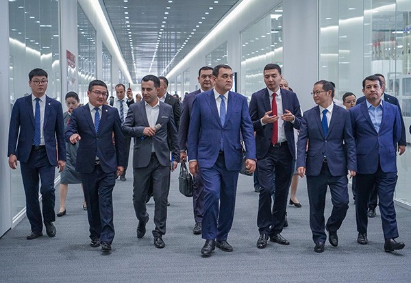 烏茲別克斯坦費(fèi)爾干納州州長(zhǎng)博扎羅夫及烏茲別克斯坦駐華大使阿爾濟(jì)耶夫一行蒞臨通威太陽(yáng)能金堂基地參觀交流