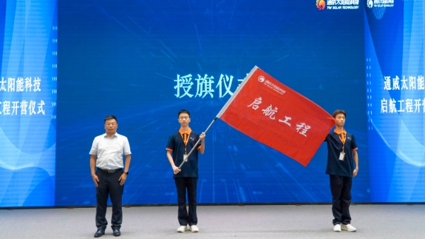 開營儀式上,為了展示2024屆啟航生的青春風采,拉響新征程的號角,啟航生進行了小組展示、宣誓儀式、授旗儀式等。儀式結束后,啟航學員們將進行13天集訓,以理論學習、小組研討、讀書分享等多樣方式,通過走進通威、行業認知、業務認知、素養提升、職業規劃等課程,深入了解通威太陽能科技行業優勢、企業文化和管理理念。