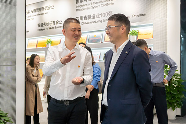 4月2日,共青團眉山市委書記周浩一行蒞臨通威太陽能(眉山)有限公司參觀指導,眉山公司電池三廠相關負責人熱情接待。