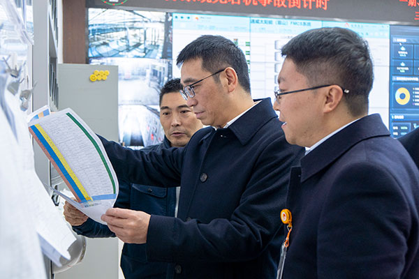 高管團隊一行對車間實時運行情況進行檢查