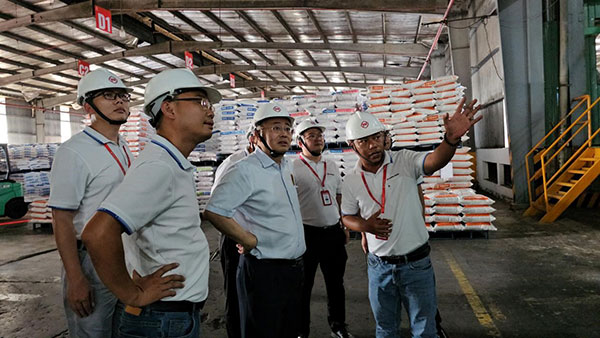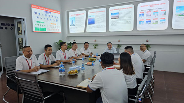 越南天邦公司總經(jīng)理劉彥、生產(chǎn)部經(jīng)理王瑞平以及相關(guān)部門經(jīng)理陪同郭總前往公司廠區(qū)和車間視察工作。王經(jīng)理向郭總說明了目前越南天邦車間運行情況,