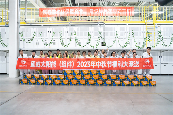 隨著中秋佳節(jié)的臨近,為了感謝員工們的辛勤付出,讓大家在節(jié)日里感受到公司的關(guān)懷和溫暖,9月26日,通威太陽(yáng)能(組件)各基地先后開(kāi)展了中秋福利派送活動(dòng)。