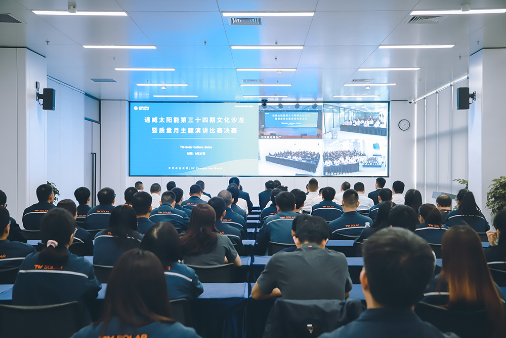 9月27日,通威太陽能第三十四期文化沙龍暨質量月主題演講比賽總決賽在雙流基地成功舉行,通威太陽能總經理周華、總經理助理陳君攜通威太陽能各基地中高管、員工代表共計600余人參加活動。