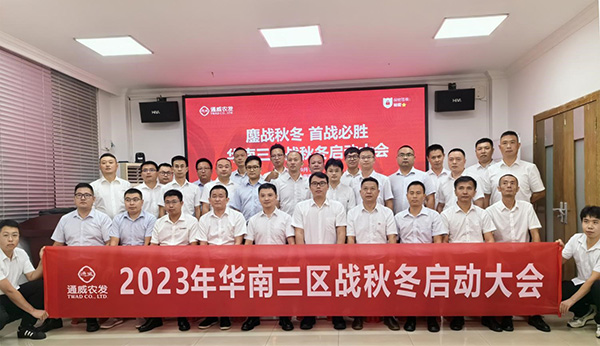 2023年9月25日,華南三區(qū)2023年戰(zhàn)秋冬啟動大會在海南海壹圓滿召開,通威農(nóng)發(fā)副總經(jīng)理何東鍵,華南三區(qū)總經(jīng)理望書生,通威農(nóng)發(fā)市場部梁海,片區(qū)服務(wù)總監(jiān)屈浩林,片區(qū)人力資源總監(jiān)陳興鑫及各公司總經(jīng)理,市場部經(jīng)理,服務(wù)經(jīng)理總計30余人出席會議。