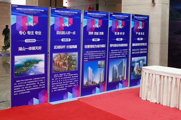 1月22日,通威國際中心大堂內裝點一新,一幅幅催人奮進的標語格外引人注目,各板塊、各公司經營成果展臺、展板整齊排列,現場工作人員熱情迎接勝利凱旋的通威英雄們。