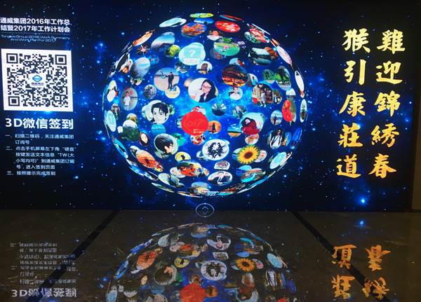 通威股份董事、永祥股份董事長兼總經理段雍在3D微信簽到屏前留影