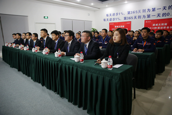 會上,劉主席作重要指示。劉主席指出,2016年行業經歷了過山車式的價格波動,市場的快速變化,我們的團隊在這一年經歷了喜悅,經歷了壓力,也經歷了心驚膽戰。可喜的是,大家一路堅強地走過來了,團隊變得更加堅強,更有能力,能夠更加從容地應對市場的變化和挑戰。展望2017年以及未來的發展規劃,首先是要面對我們的霧霾問題,中國的社會經濟、節能減排、轉型升級方向和出路究竟在哪里,已經成為我們全社會共同關注的問題。也許我們對霧霾的了解和認識各有不同,但達成高度共識的是,霧霾的主要成分來源于我們化石能源的燃燒,這一點幾乎是全世界、全中國、全社會的共識。節能減排、提高環保標準,是一個量變的方向,真正實現從化石能源到清潔能源的轉變,無疑是我們唯一的出路。縱觀清潔能源,水電、風電、生物質能都是新增長的來源。但如果仔細思考其安全性、可持續性,太陽能光伏發電始終是今天、明天及將來我們所能夠依賴的最主要、最便宜、最廣泛、最清潔、最可持續生產使用的永續能源。
