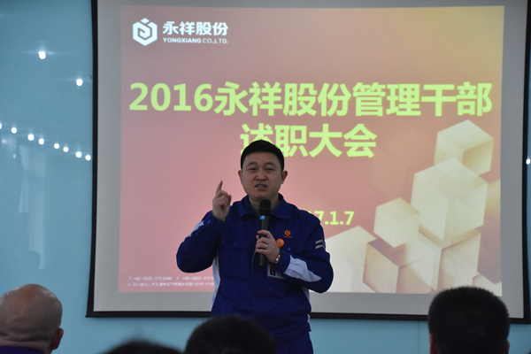 會上,18名干部分別就本職工作進行了精彩回顧并提出2017年工作計劃。2016年,永祥股份積極開展項目調研、技術交流,掌握新能源及氯堿等相關產業的前沿資訊,與時俱進;在工程建設管理標準化方面不斷深入,建立并實施安全施工、過程管理相關標準;多晶硅標準化從1.0升級到2.0,通過成立“三廢”、“冰機”、“渣漿”等攻關小組,開展專項攻關,取得了豐碩成果,通過引進JCC等先進管理工具,強化執行、安全生產邁上新臺階;永祥多晶硅在技術創新、工藝開發、項目申報等方面潛心投入,全年科技創新項目及合理化建議共計90項,全部實施可創造直接經濟效益數千萬元;永祥樹脂通過組態生產,精心管理,裝置優化,強化技能培訓,生產經營達到歷史最好水平;永祥水泥內抓生產質量,嚴控指標,外拓市場整合資源,不斷刷新紀錄,取得了歷史最佳業績;永祥硅材料工期質量兩不誤,歷時5個月建成項目,開創業內奇跡;采購在供應商管理、“互聯網+采購”等方面進一步推廣,降本增效取得優異業績;財務中心在全面預算管理、流程管理、資產管理、信息化推廣等工作表現不俗,工作前移,為公司決策提供強大的支撐。
