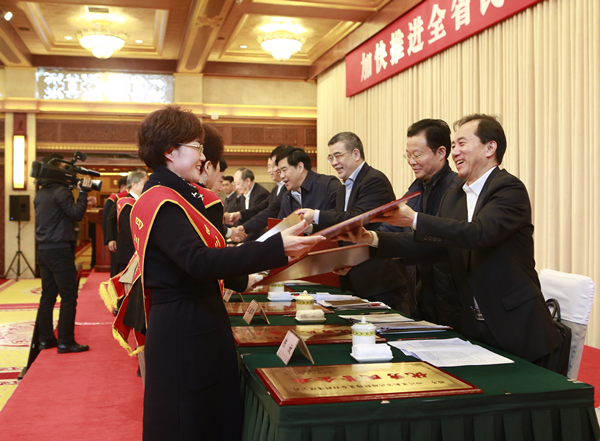 當天大會通報表彰了通威集團、永祥股份等100家優秀民營企業,通威集團禚玉嬌總裁,通威股份董事、永祥股份董事長兼總經理段雍分別代表通威集團、永祥股份上臺領取“優秀民營企業”獎牌。大會同時勉勵獲獎企業珍惜榮譽、再創佳績,大力弘揚“愛國、敬業、誠信、守法、貢獻”的價值取向,為推動全省經濟加快發展做出更大貢獻。會后,禚玉嬌總裁與段雍董事長參加了當天下午舉行分組討論,為推進四川民營經濟發展積極建言獻策。