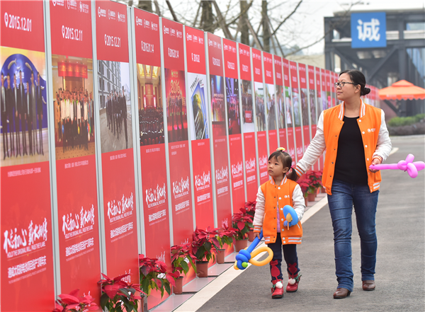 員工及家屬在布置一新的成都公司門口合影留念