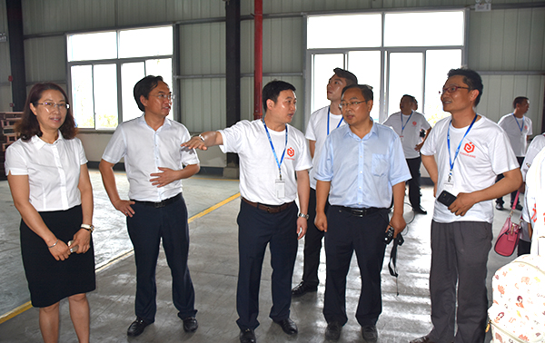 四川通威總經理李德貴陪同下,段雍董事長一行參觀四川通威生產車間