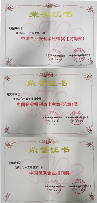近日,由中國定向出版物發(fā)展促進(jìn)會、中國企業(yè)內(nèi)部報刊(通訊)大會發(fā)布的“第十屆中國企業(yè)內(nèi)部報刊獎”重磅出爐。經(jīng)由國內(nèi)新聞界、學(xué)術(shù)界專家對《通威報》從內(nèi)容、版面、編輯,及企業(yè)報刊的結(jié)構(gòu)創(chuàng)新、功能延伸、社會效應(yīng)等方面綜合評審,《通威報》一舉斬獲本次評選最高獎項“中國企業(yè)內(nèi)部報刊金紐帶獎(特等獎)”及“中國優(yōu)秀企業(yè)報刊獎”、“中國企業(yè)報刊杰出主編(總編)獎”三大獎項。