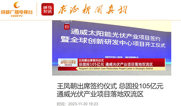 四川新聞網、成都電視臺、成都日報等多家媒體聚焦通威太陽能新發展新項目
