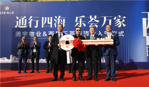 簽約儀式環節,在現場領導嘉賓的共同見證下,通宇物業總經理孫斌與樂薈城營銷總監邱晉代表兩家公司現場簽訂戰略合作協議,并舉行了隆重的“管理金鑰匙”交接儀式,標志著通宇物業正式入駐西昌樂薈城項目。